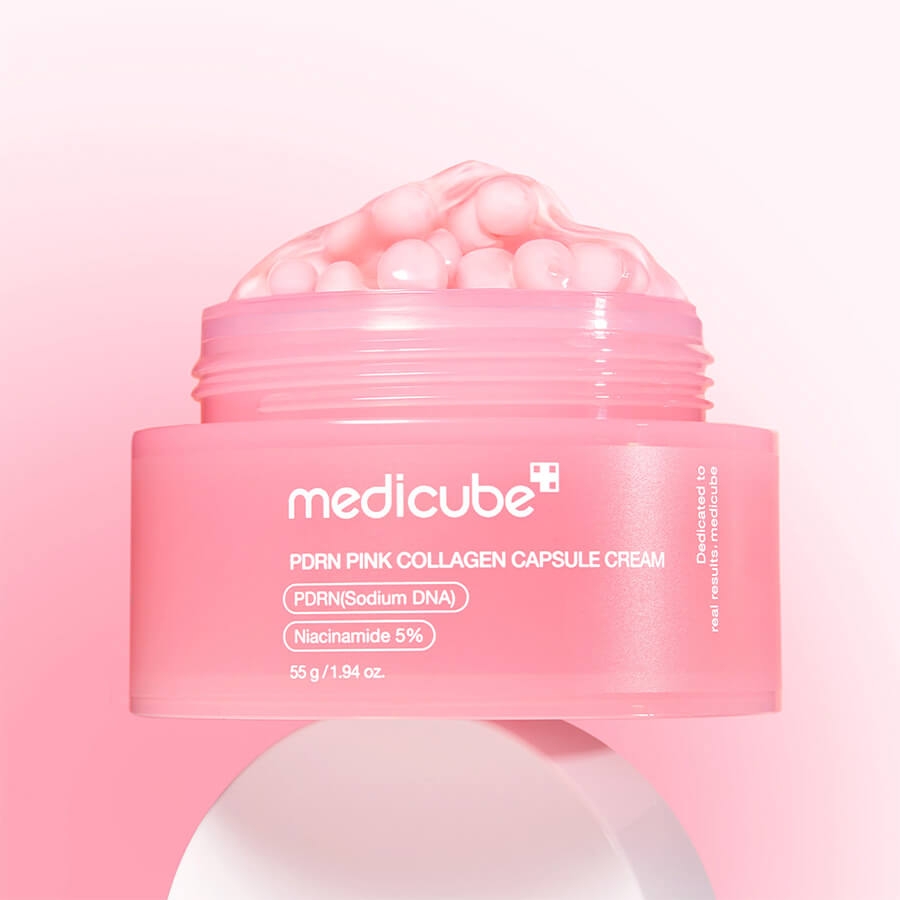 کرم کپسولی PDRN و کلاژن صورتی مدی کیوب،medicube – PDRN Pink Collagen Capsule Cream یک نوآوری در عرصه مراقبت از پوست از برند مدی کیوب است که با هدف تامین رطوبت عمیق، افزایش چشمگیر درخشندگی و احیای جوانی پوست شما طراحی شده است. این کرم با بهرهگیری از ترکیبات قدرتمندی همچون PDRN (پلی دئوکسی ریبونوکلئوتید) استخراج شده از DNA ماهی قزلآلا، نیاسینامید و کلاژن، فرمولی منحصر به فرد را ارائه میدهد.